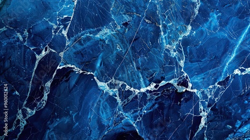Wallpaper featuring rich blue marble with bold white veins polished finish under bright light for a dramatic elegant backdrop