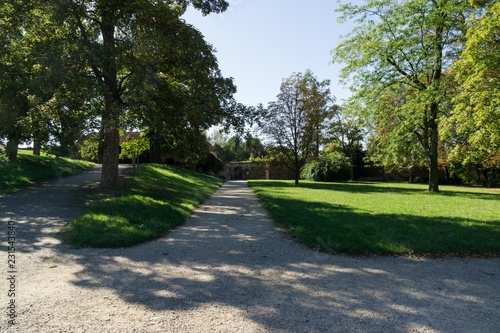 Walls and statues in the park Slavkov u Brna. Czech Republic