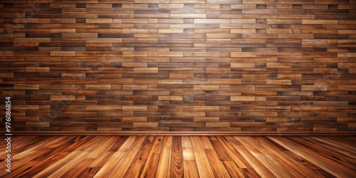Walnut wood floor with textured wall background