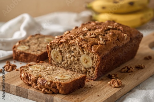 Walnut-studded banana loaf slices