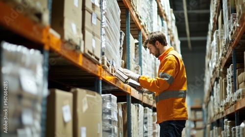 Warehouse worker sorting and allocating inventory items into labeled bins or sections