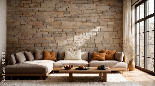 Warm Cozy House Contemporary Divan Textured Stone Surface
