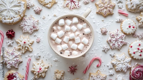 Warm Cup of Hot Cocoa with Marshmallows Surrounded by Treats