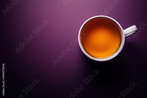 Warm cup of tea resting on a purple surface for a cozy moment of relaxation