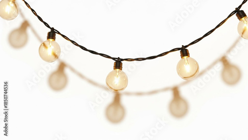 Warm glowing spherical string lights creating a festive and decorative ambiance against a bright white background.