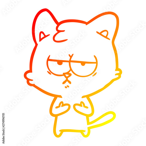 warm gradient line drawing bored cartoon cat