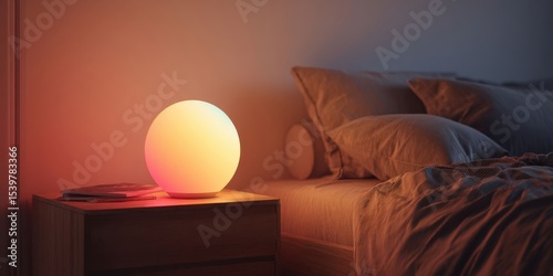 Warm Gradient Sphere Lamp on Bed in Cozy Bedroom