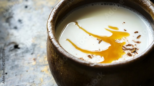 Warm Spiced Milk in a Rustic Bowl: A Cozy Winter Drink