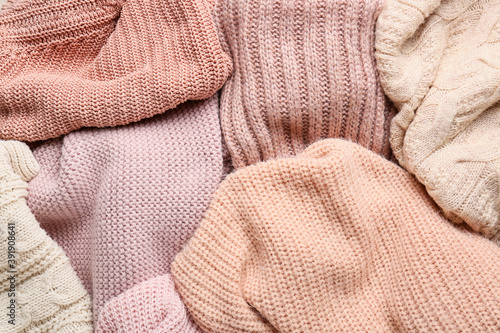 Warm winter clothes as background