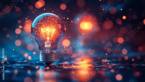 Warmly illuminated 3D light bulb, representing creativity and bright ideas, radiant digital illustration