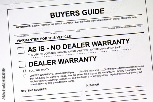 Warranty disclosure document for automobile purchases Required by Federal Trade Commission