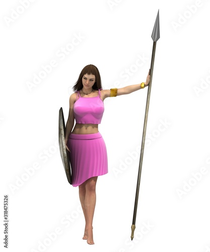 warrior woman character, 3D rendering, illustration