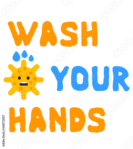 Wash your hands poster with virus, line design