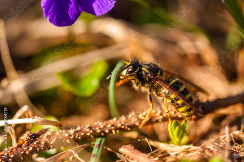 Wasp on a branch close-up, macro.