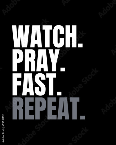 Watch. Pray. Fast. Repeat. Artwork for t-shirt.