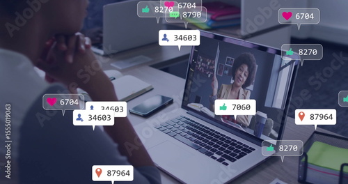Watching image on laptop, person in school receiving social media notifications