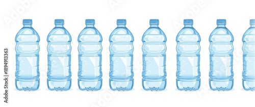 Water bottles in cartoon design: plastic containers for liquids, clear drink flasks, white background