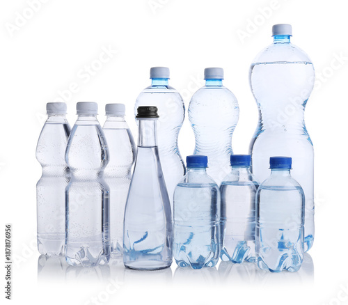 Water bottles of different sizes isolated on white