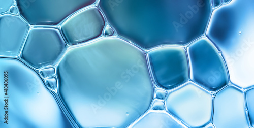 Water bubbles abstract colorful background, blue water drops macro as natural backgound.