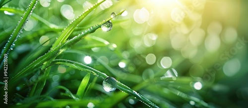 Water Drops On Green Grass Leaves In The Morning Raindrops Macro Photography Selective Focus Shallow Depth Of Field Blurred Background