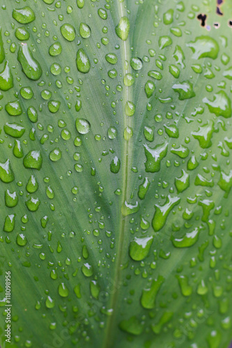 Water drops on green leaf