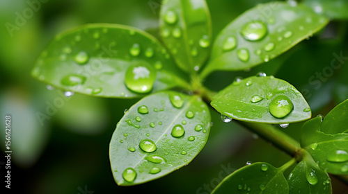 Water drops on green leaves