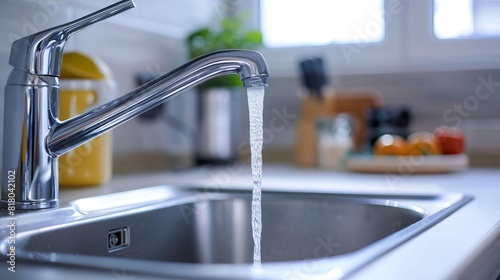 Water faucet running in a kitchen
