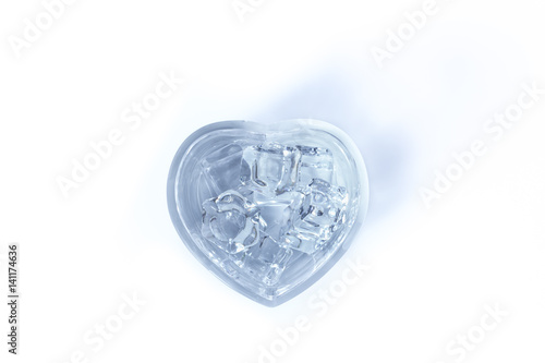 Water in glass heart on a white background