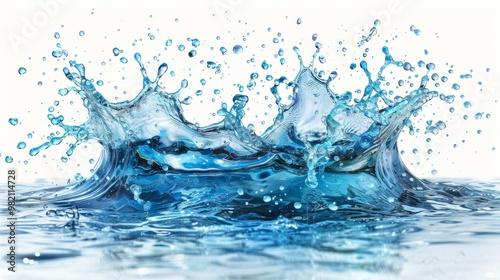 Water splash with drops and ripples isolated on white background. AI generative. .