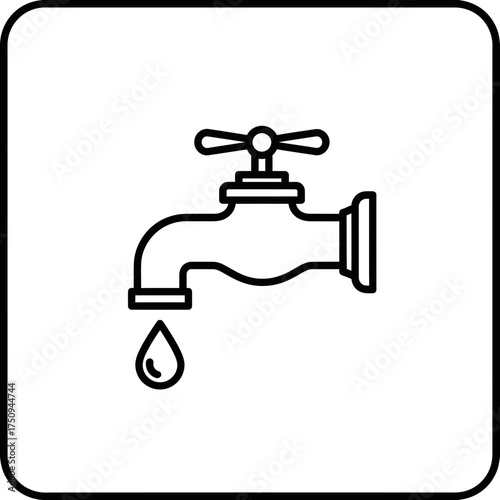 Water Tap Icon | Dripping Faucet Symbol | Plumbing Line Vector Design
