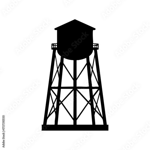 Water tower silhouette, black structure, isolated, industrial, minimal style, perfect for architectural or urban design projects.