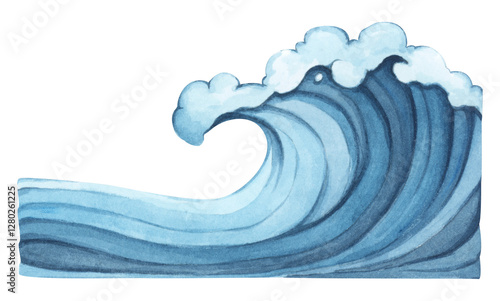 Water wave watercolor flat summer minimal sea ocean abstract art.