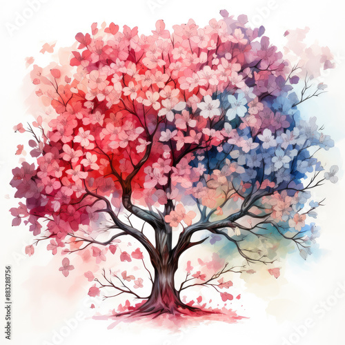 Watercolor Abstract Blossom Tree Illustration, Generative Ai
