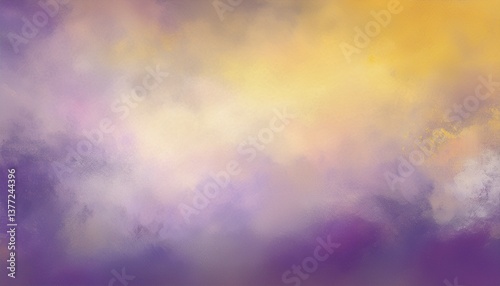 Watercolor background in purple and yellow painting with cloudy distressed texture grunge border, soft fog or hazy lighting and pastel colors. Generated image