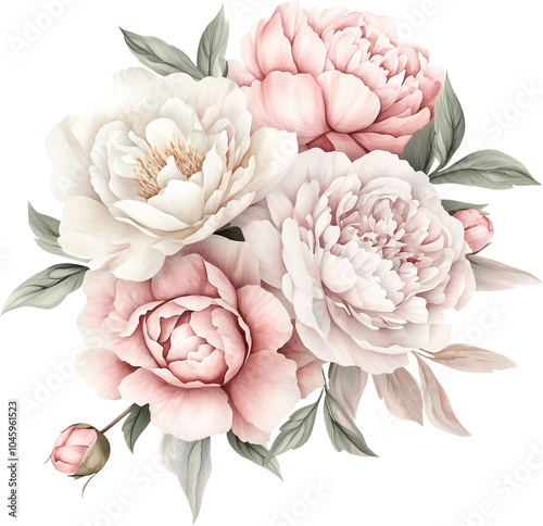 Watercolor blush pink flowers. Pink floral bouquet. Generative AI.