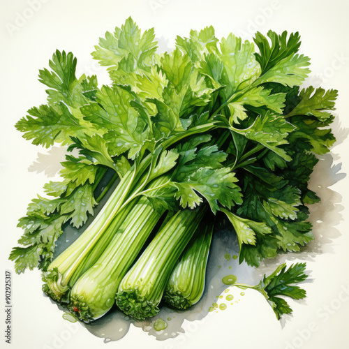 Watercolor Celery, clipart Illustration, Generative Ai