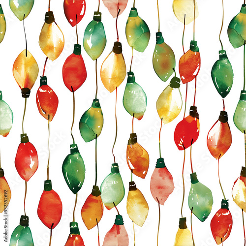 Watercolor christmas lights pattern transparent background