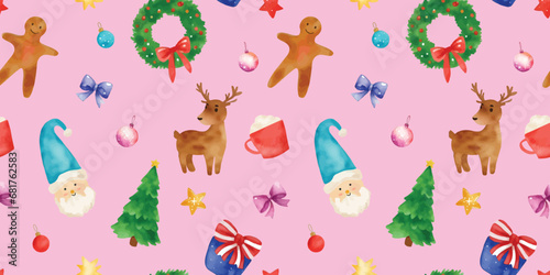 Watercolor christmas seamless pattern