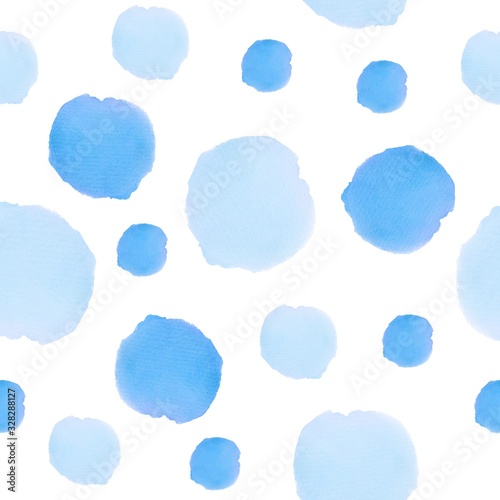 Watercolor circles in pastel colors seamless pattern. Aquarelle spots wallpaper. Blue dots.