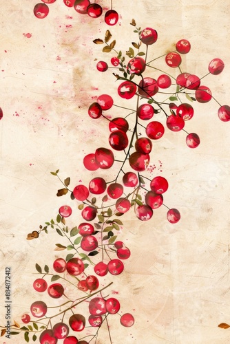 watercolor clipart of cranberries seamless repeating pattern on parchment page, vintage scrapbook page, copy space in center, for Junk Journal, Digital Paper, Printable Journaling page, Scrapbooking