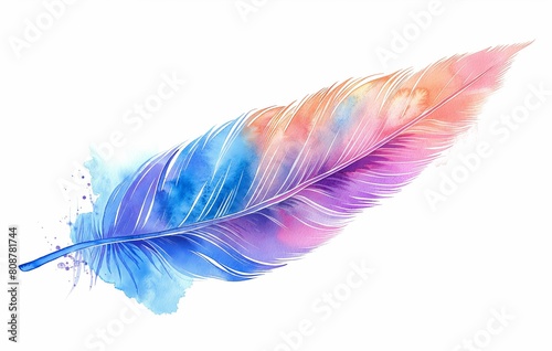 Watercolor feather isolated, for print or kid cover book flat illustration on white background