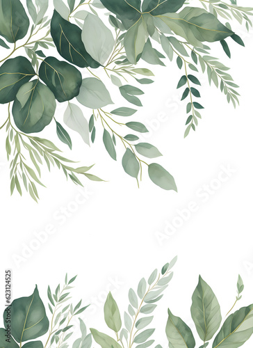 Watercolor floral set with green leaf branches collection for wedding,greetings on transparent background,generative ai