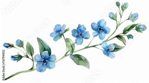 Watercolor forgetmenot clipart with small blue flowers and green leaves ,clean sharp focus