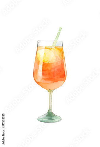 Watercolor fruit cocktails drink for summer party. Logo creator for cocktails drink bar menu. High quality watercolor hand drawn drink illustration