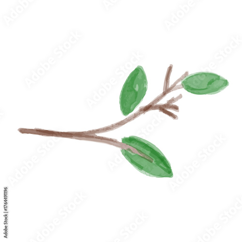 watercolor green leaf and white flower element design