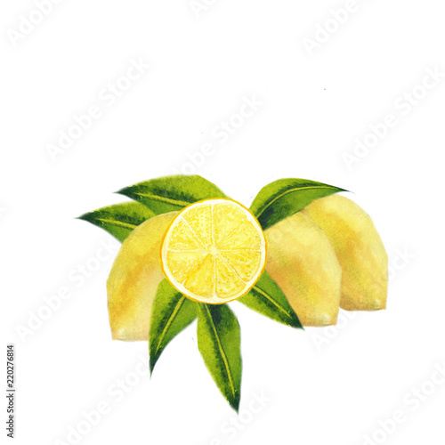 Watercolor hand drawn wreath with lemon and leaves isolated on white background.