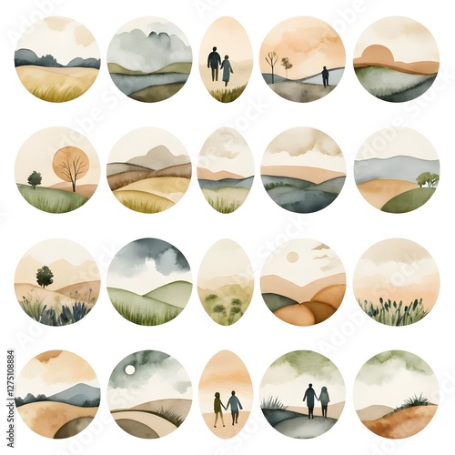 Watercolor Landscape Set Minimalist Nature Scenes