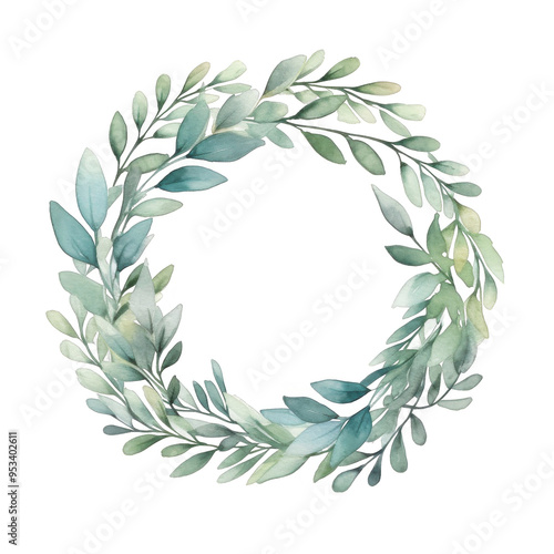 Watercolor Leaf Wreath Isolated on a Transparent Background