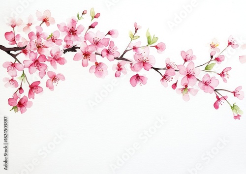 Watercolor Pink Cherry Blossom Branch on White Background for Spring Floral Design