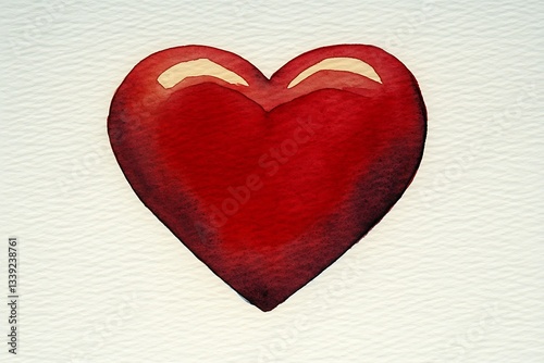 Watercolor Red Heart on Paper.
